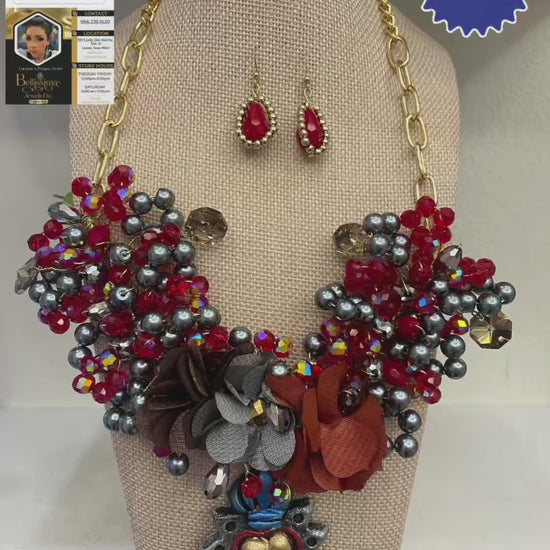Artisan Bib Crystals Necklace Set w/ Complementary Earrings (18” long + 2”extender)