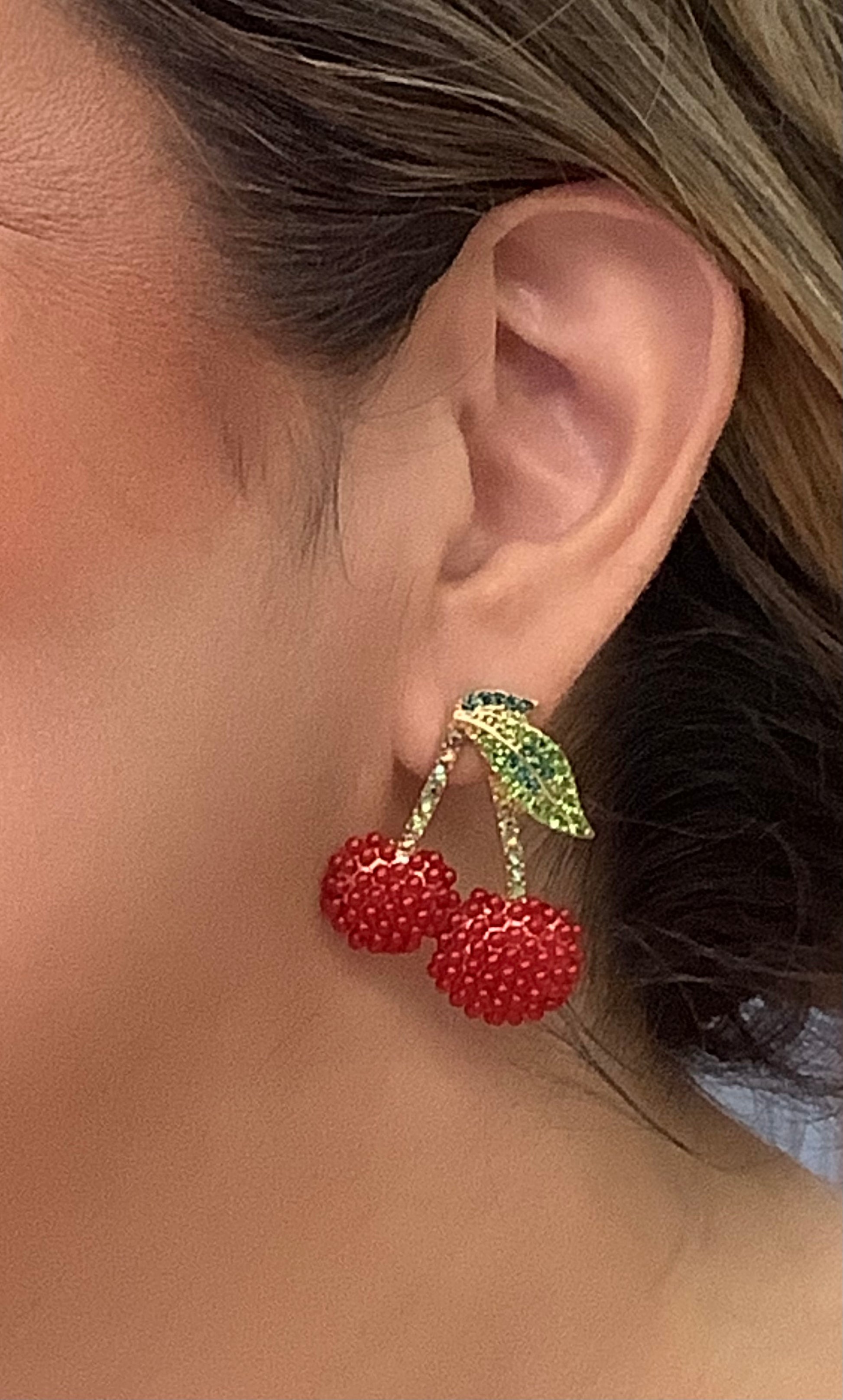 This playful cherry design is infused with a vintage-inspired flair. Perfect for gifting or adding a sparkly pop of color to your timeless style. For pierced ears, lightweight, highly recommended.