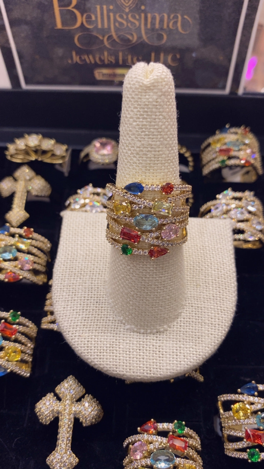 Let’s talk about a gorgeous cocktail gem. This chunky ring is a show stopper! We have it available in clear/white and multicolor gemstones, true to size, with special details. Another perfect gift for the holidays!