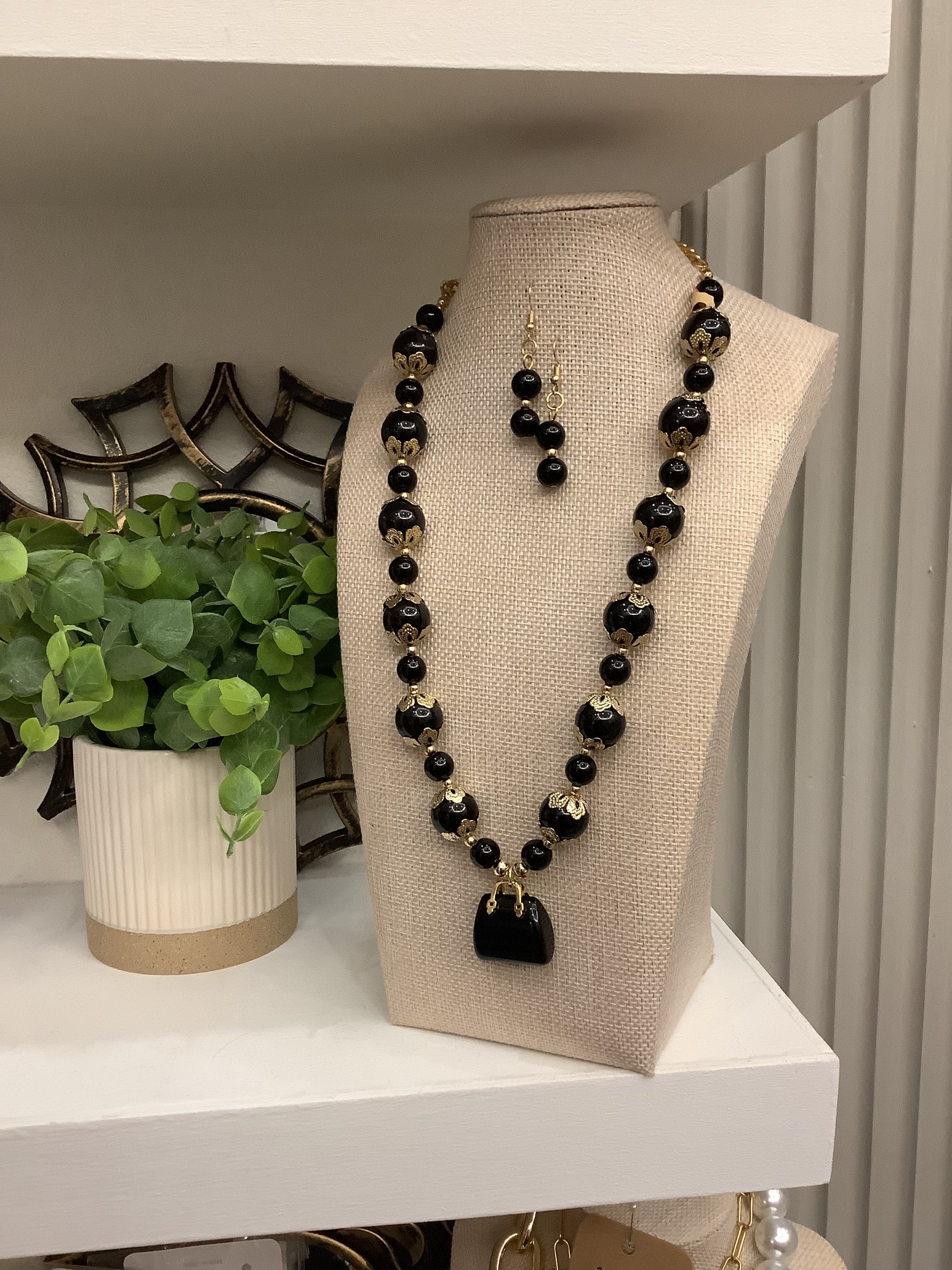 NOTE: The pendant matches the necklace and earrings and it is in the shape of a mini-handbag.