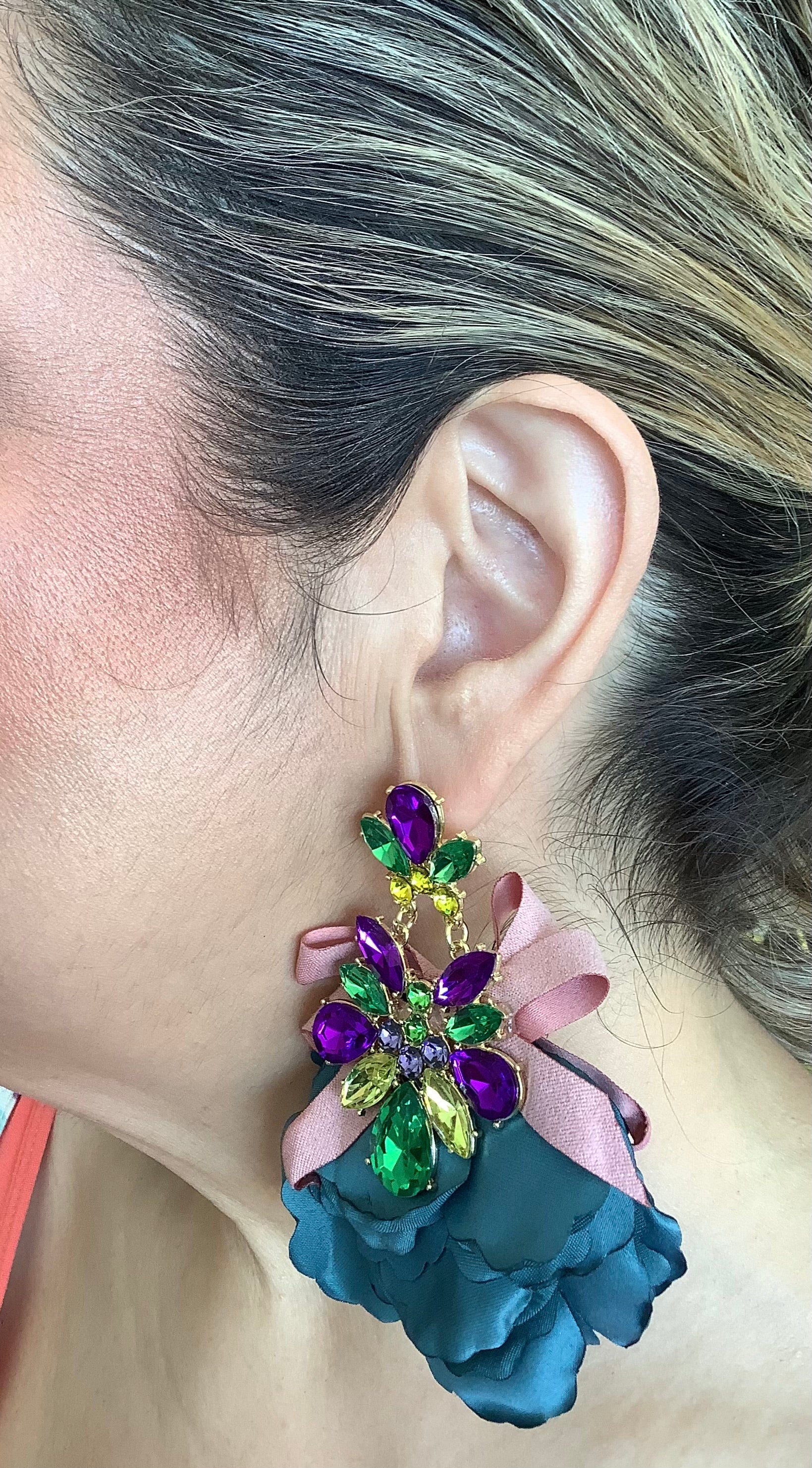 Mystic Flower with Gems Earrings TEAL GREEN