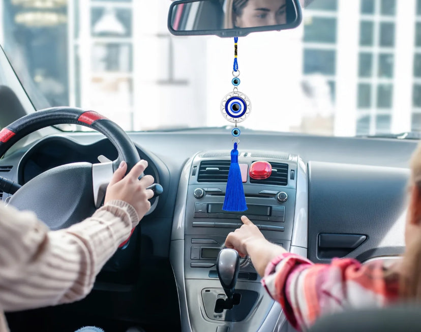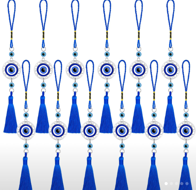 This blue Turkish Evil Eye 🧿 tassel pendant, is the perfect accessory to complete your look. The blue Turkish evil eye is a powerful amulet to ward off negative energy and bad luck. The primary function of this amulet is to act as a shield against negative energy, ill intentions, and envious glares that are believed to bring harm. Accessorize your car, keys, or your purse with style.